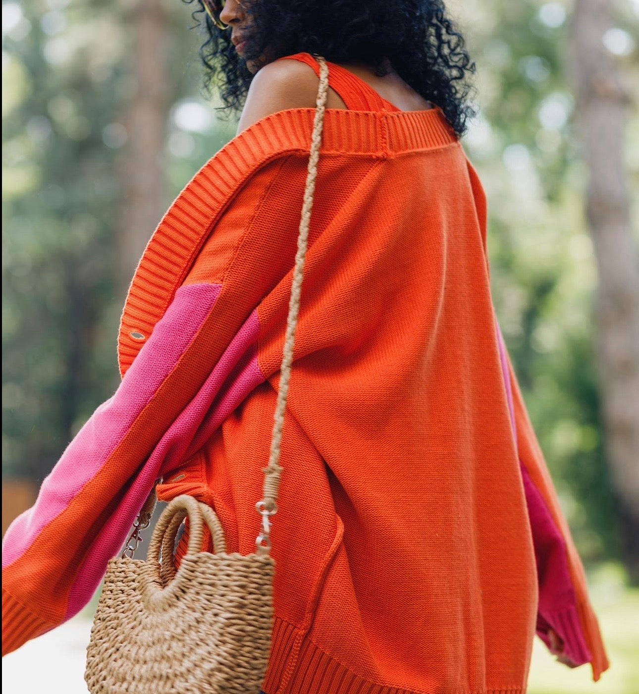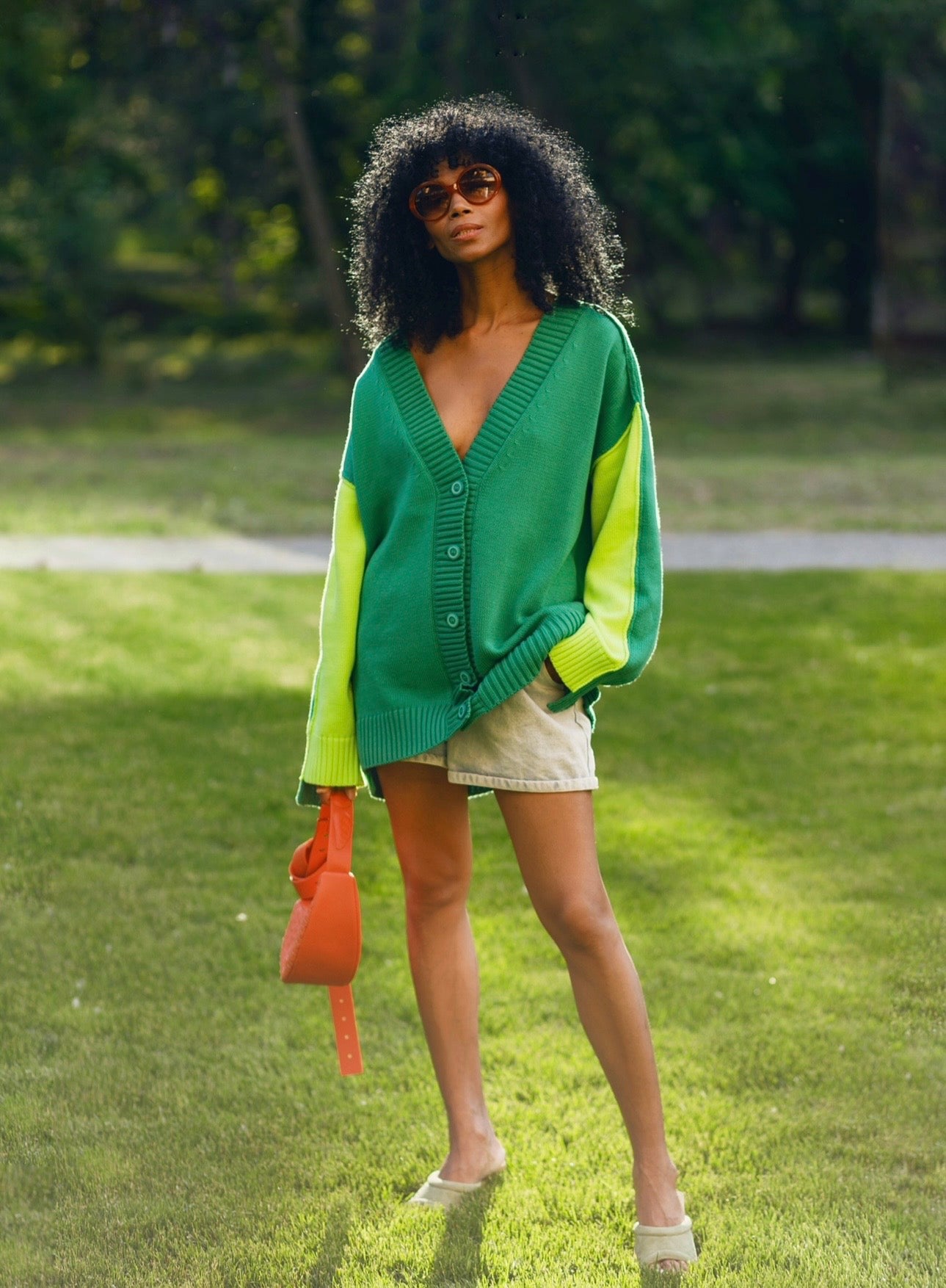 Кардиган, який стане головним акцентом гардеробу, коли хочеться настрою та яскравих кольорів, буде красиво з брюками чи джинсами розширеними до низу.