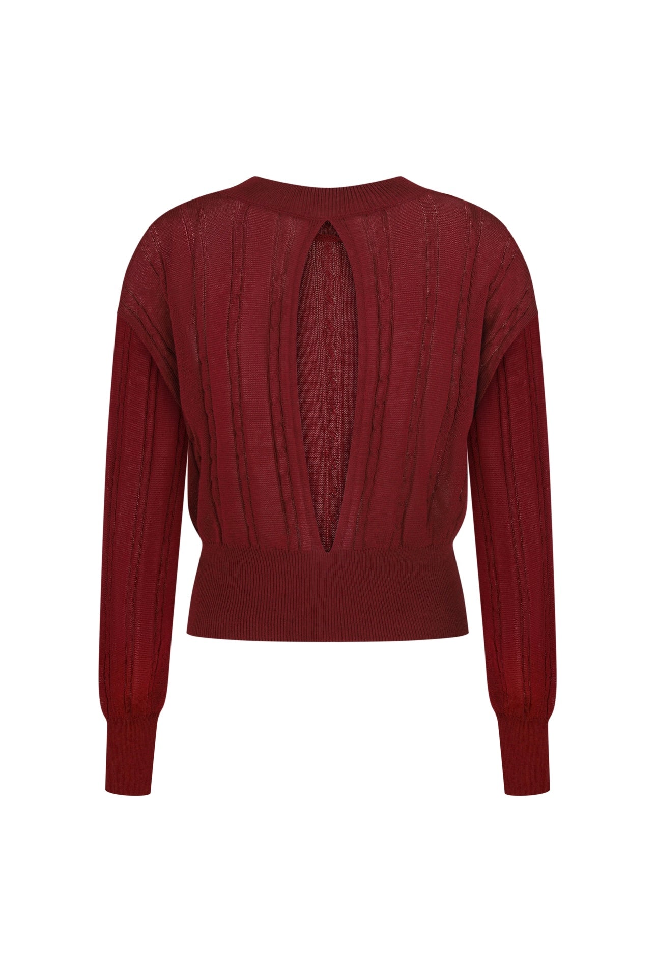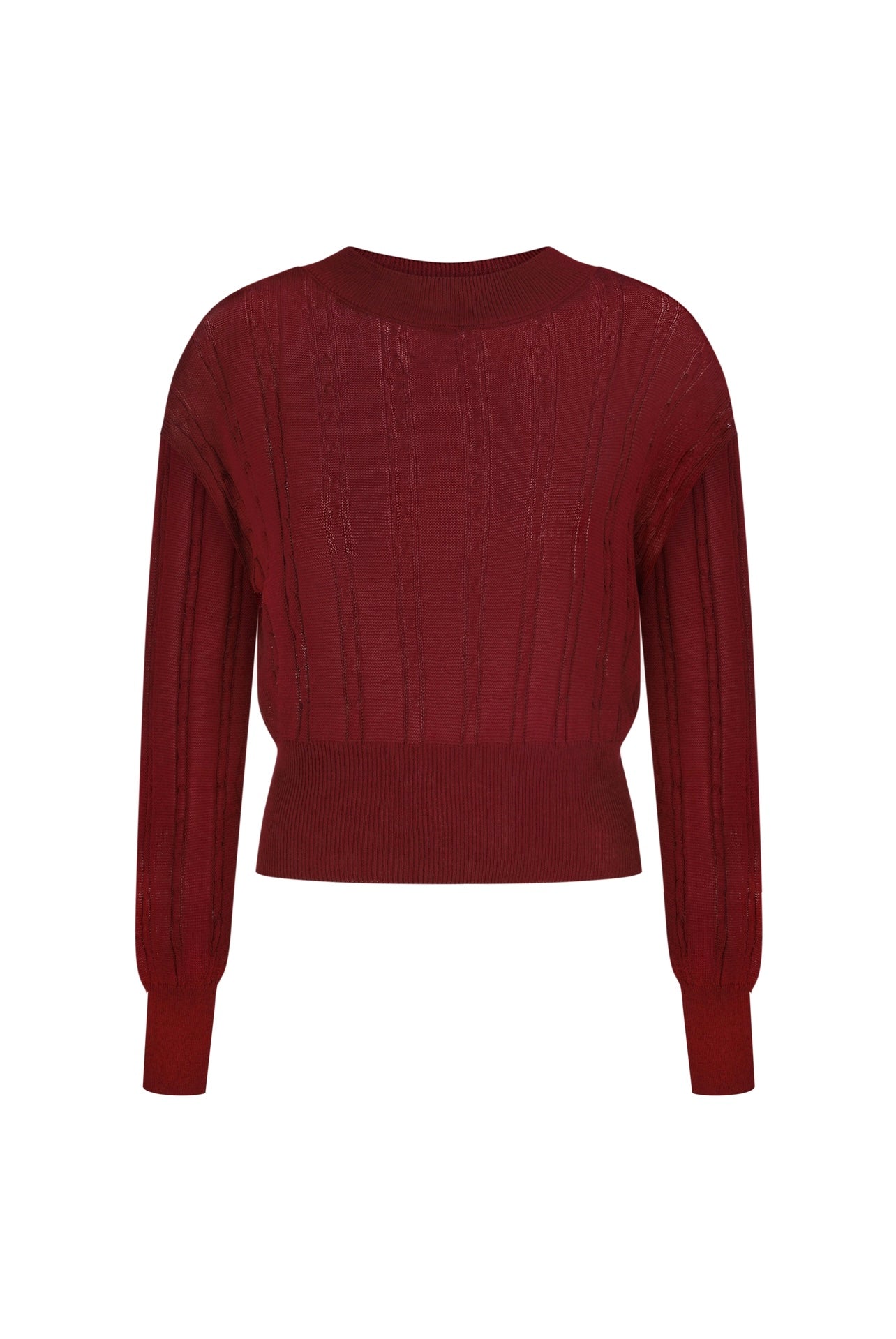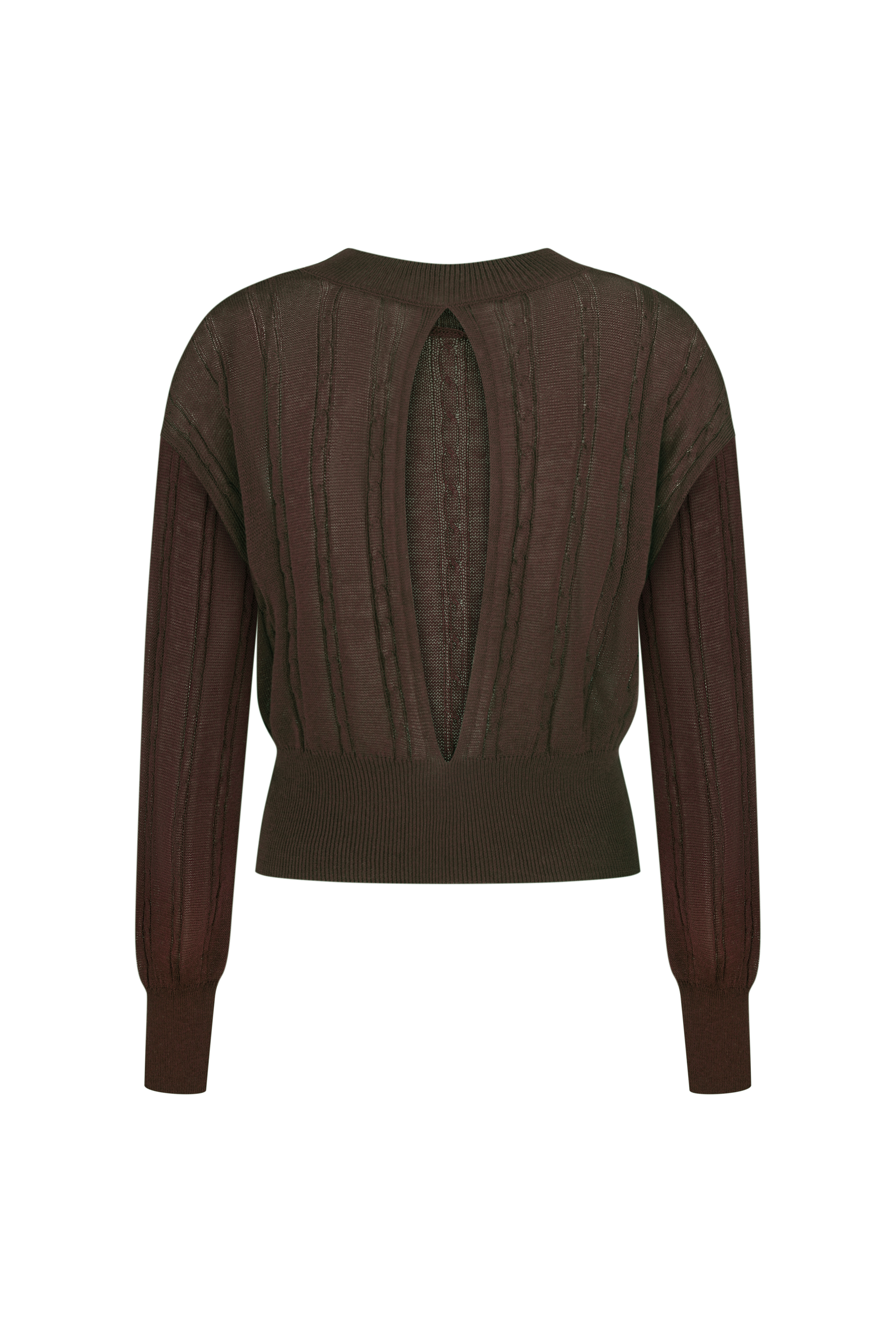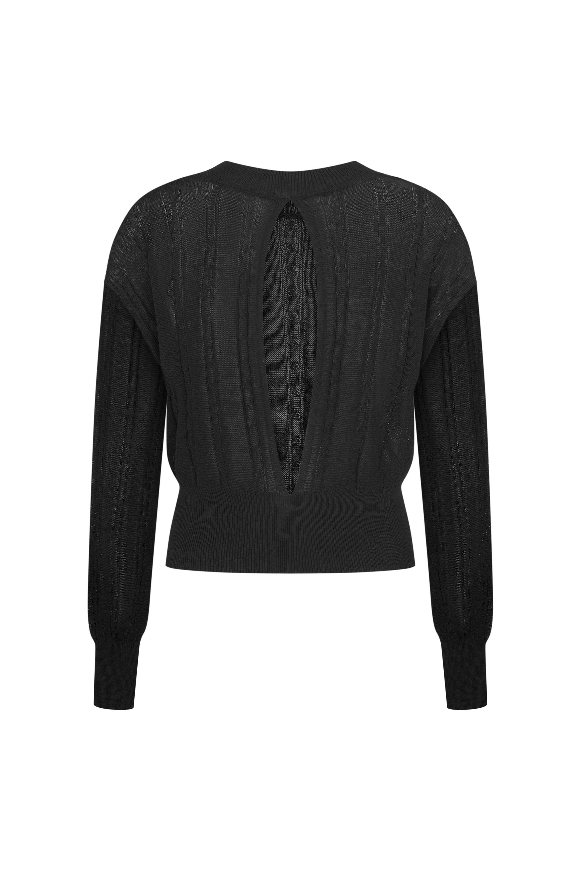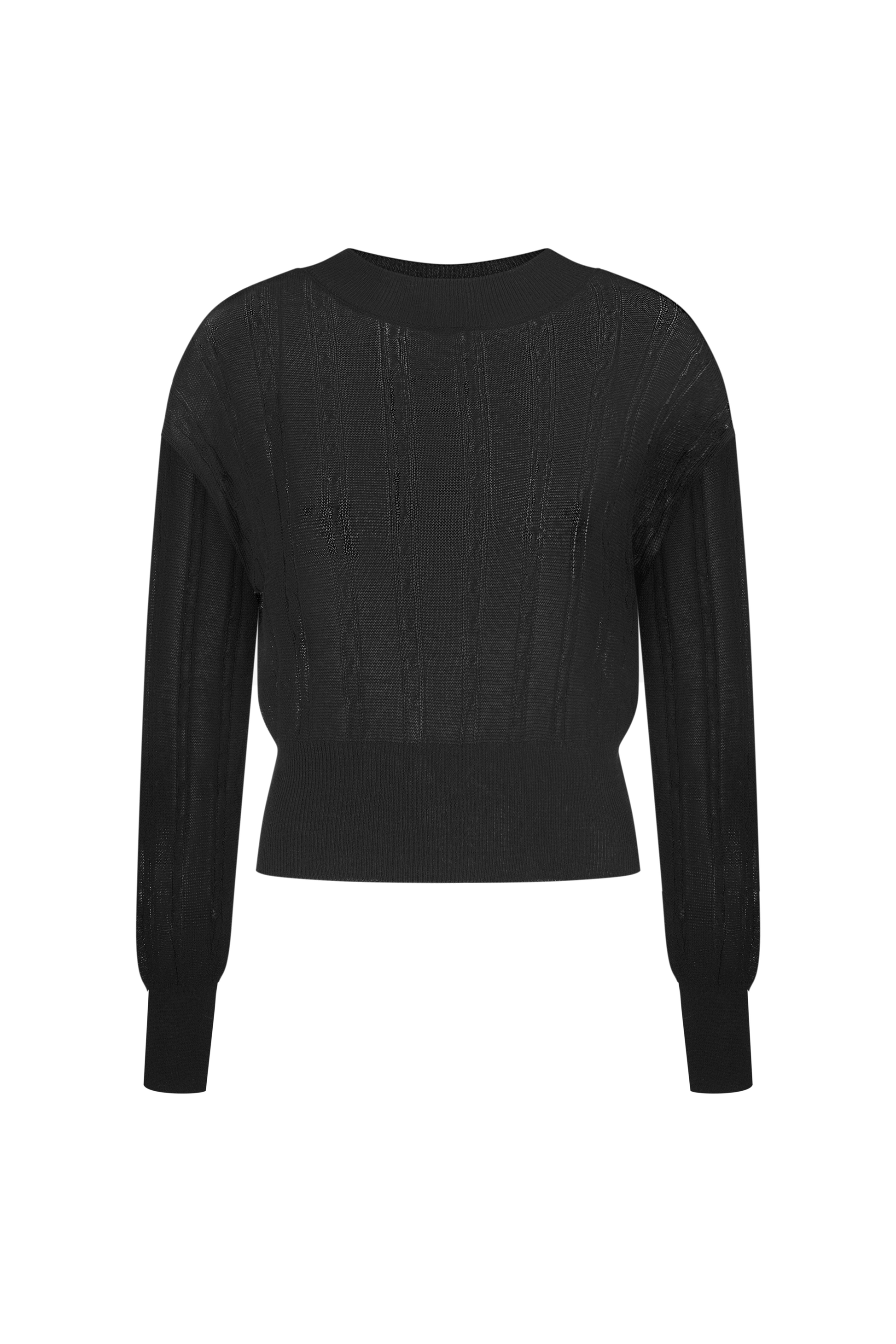 Напівпрозора кофтинка з легким напуском і резинкою на талії, ніжна бавовняна нитка, тоненька косичка, така кофта-блуза виглядає дуже елегантно. Можна одягнути топ під низ та експериментувати з розрізом на перед.