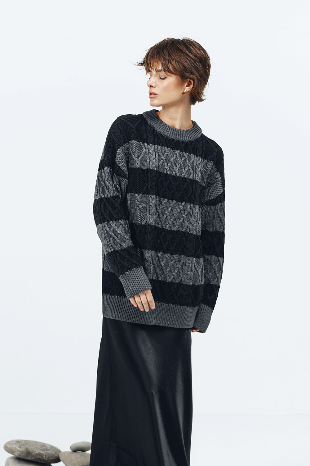 Легкий оверсайз светр в косичку, натуральна бавовняна нитка, спокійна гама, яка поєднується з сукнями, брюками джинсами.