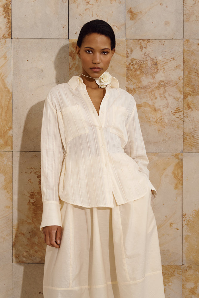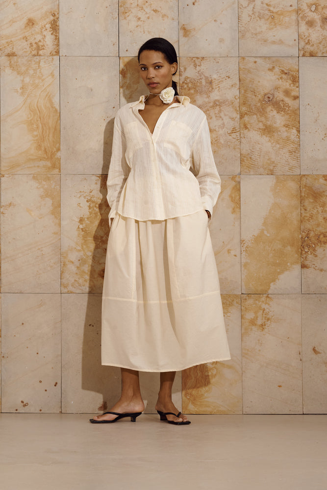 У поєднанні зі спідницею Tulip цей образ стає серцем колекції - втіленням її настрою, балансу форм і природної естетики.