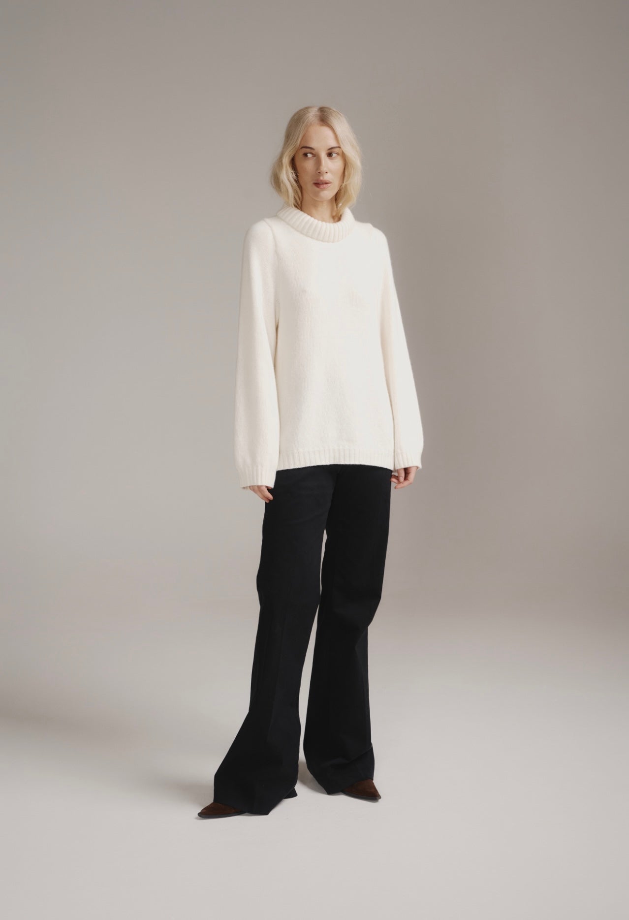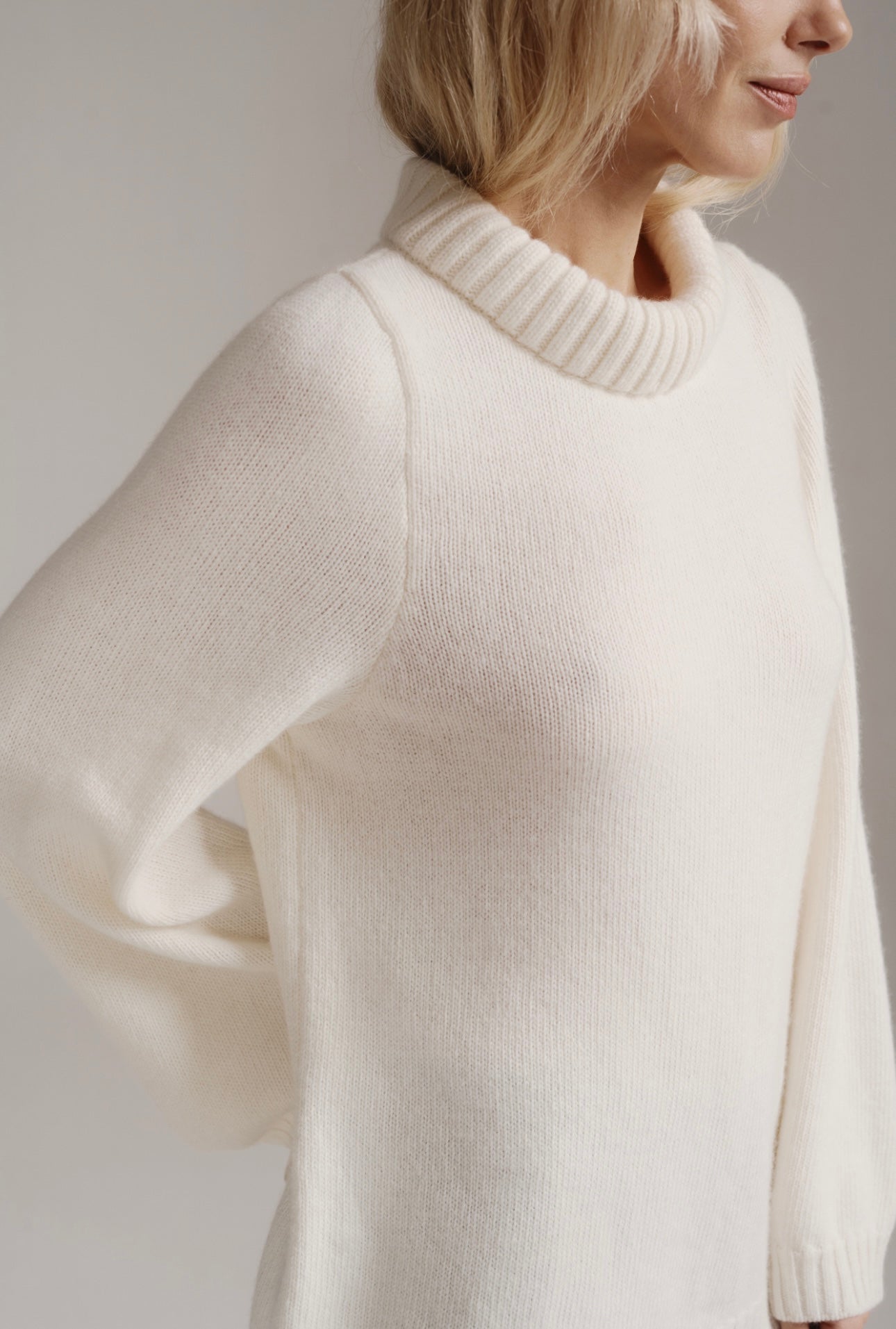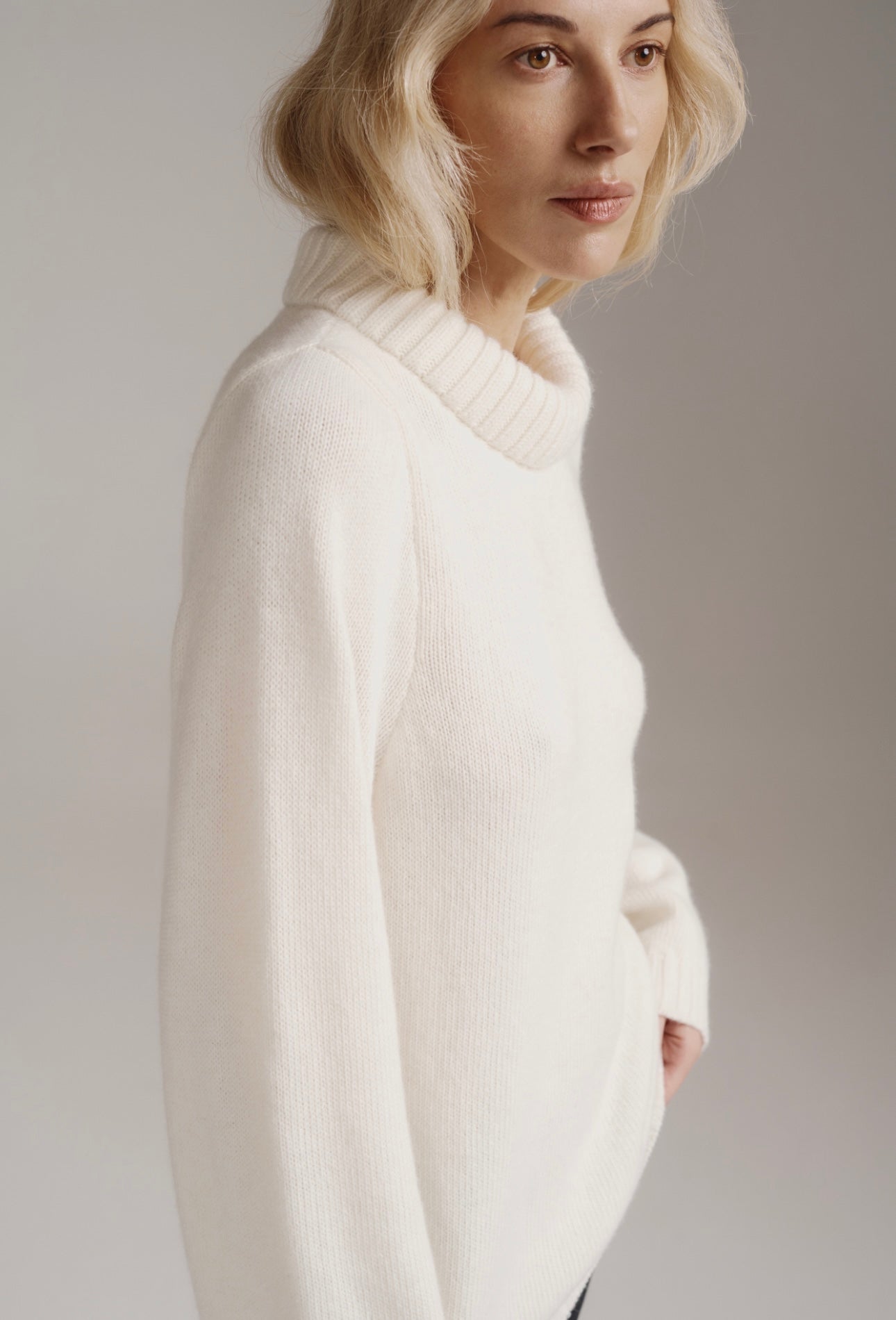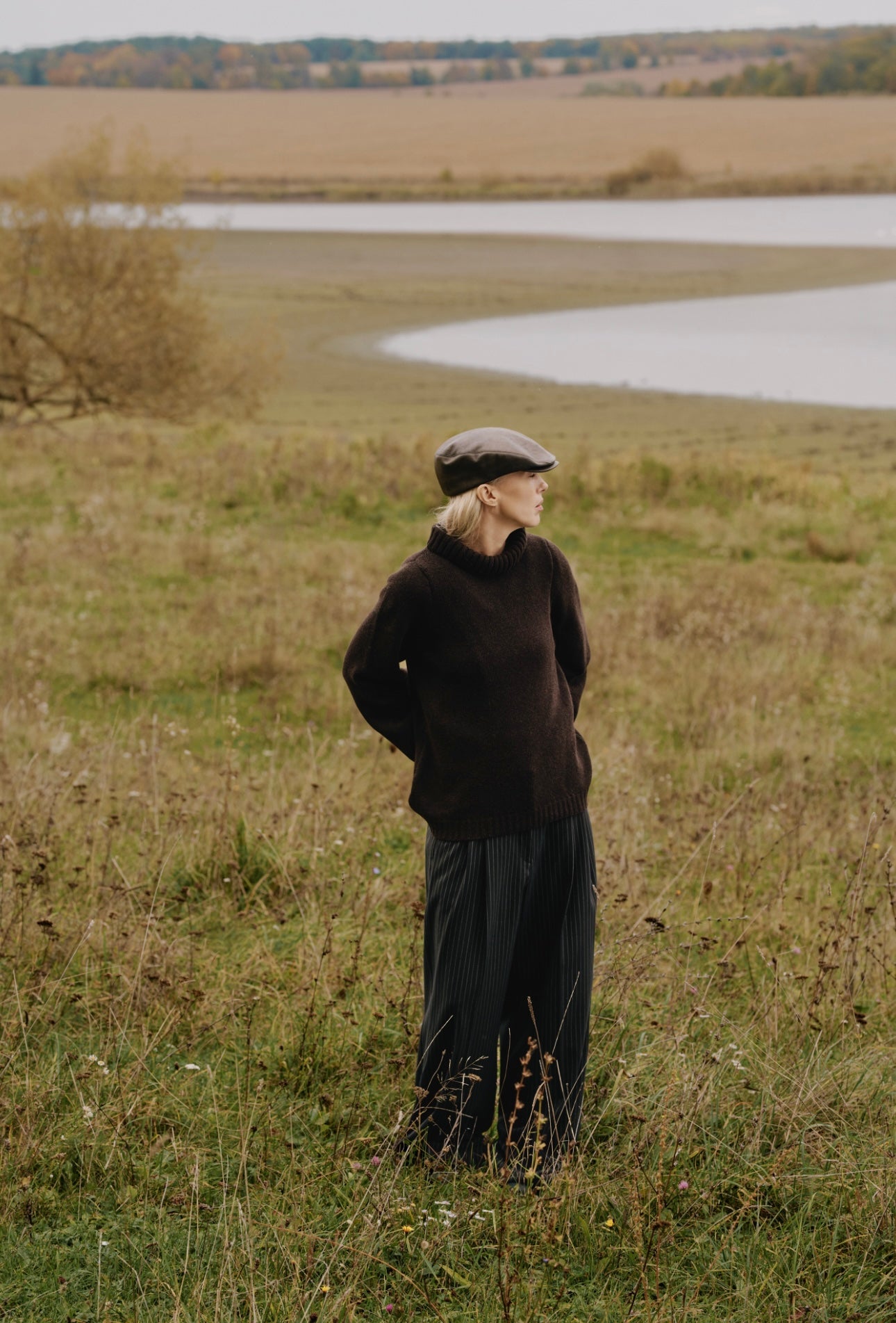 Мʼякий, як дотик, і теплий, як тиша зимового ранку. Светр з вовни ягняти, що обіймає теплом і виглядає дуже елегантно. Напівприлеглий силует з мʼяким розширеним рукавом та цікавою фактурною горловиною в формі намиста робить його базою, до якої хочеться повертатись щодня.