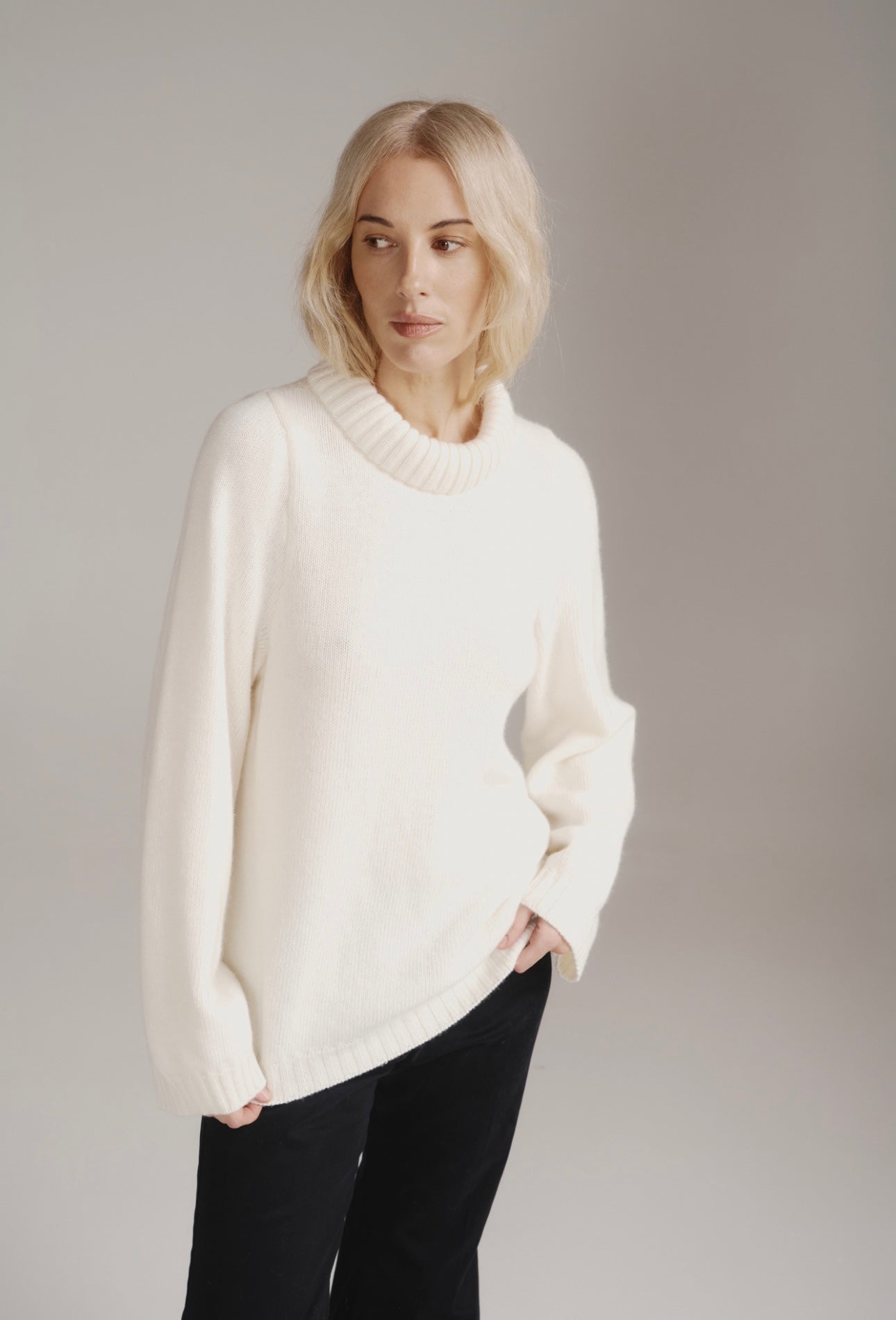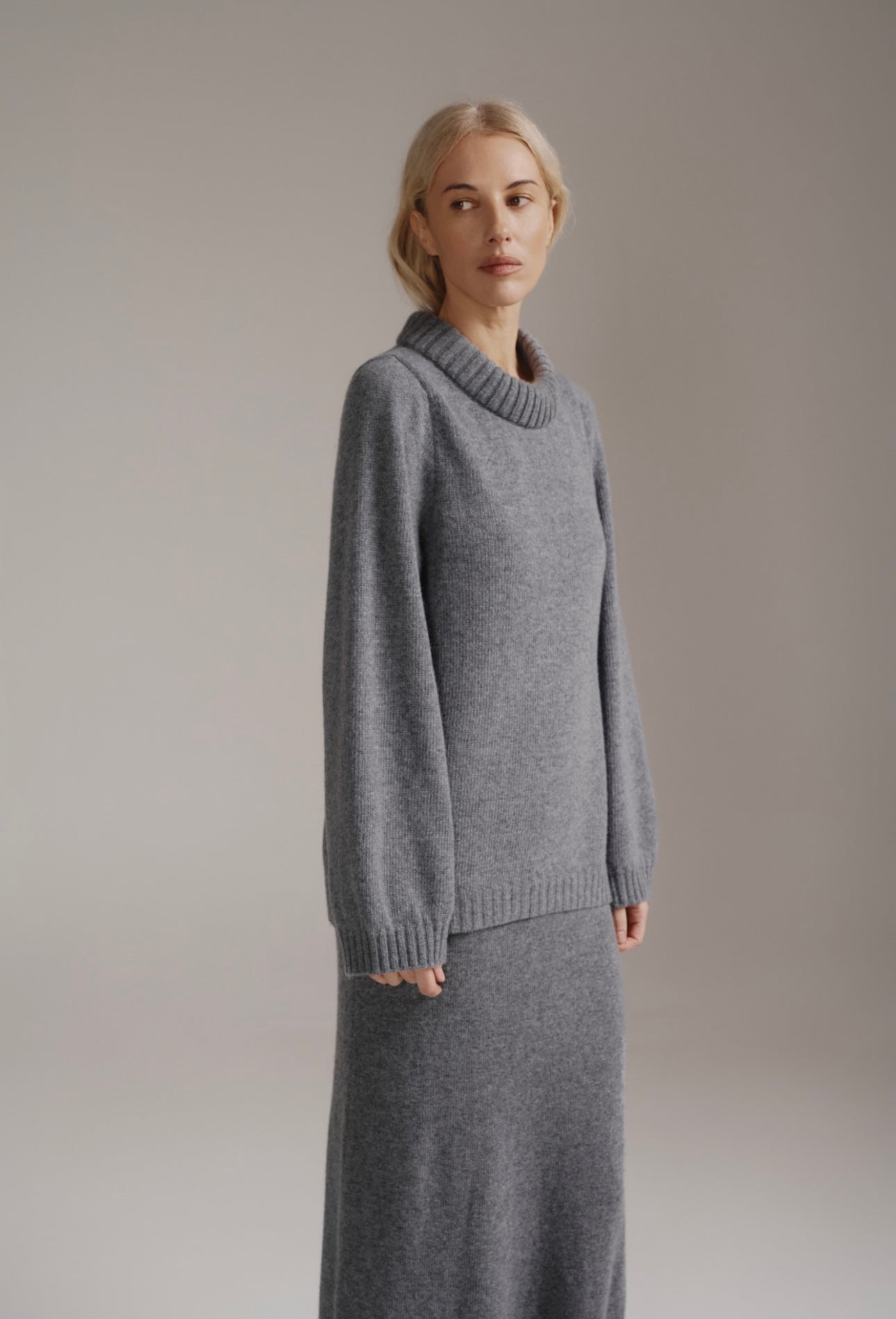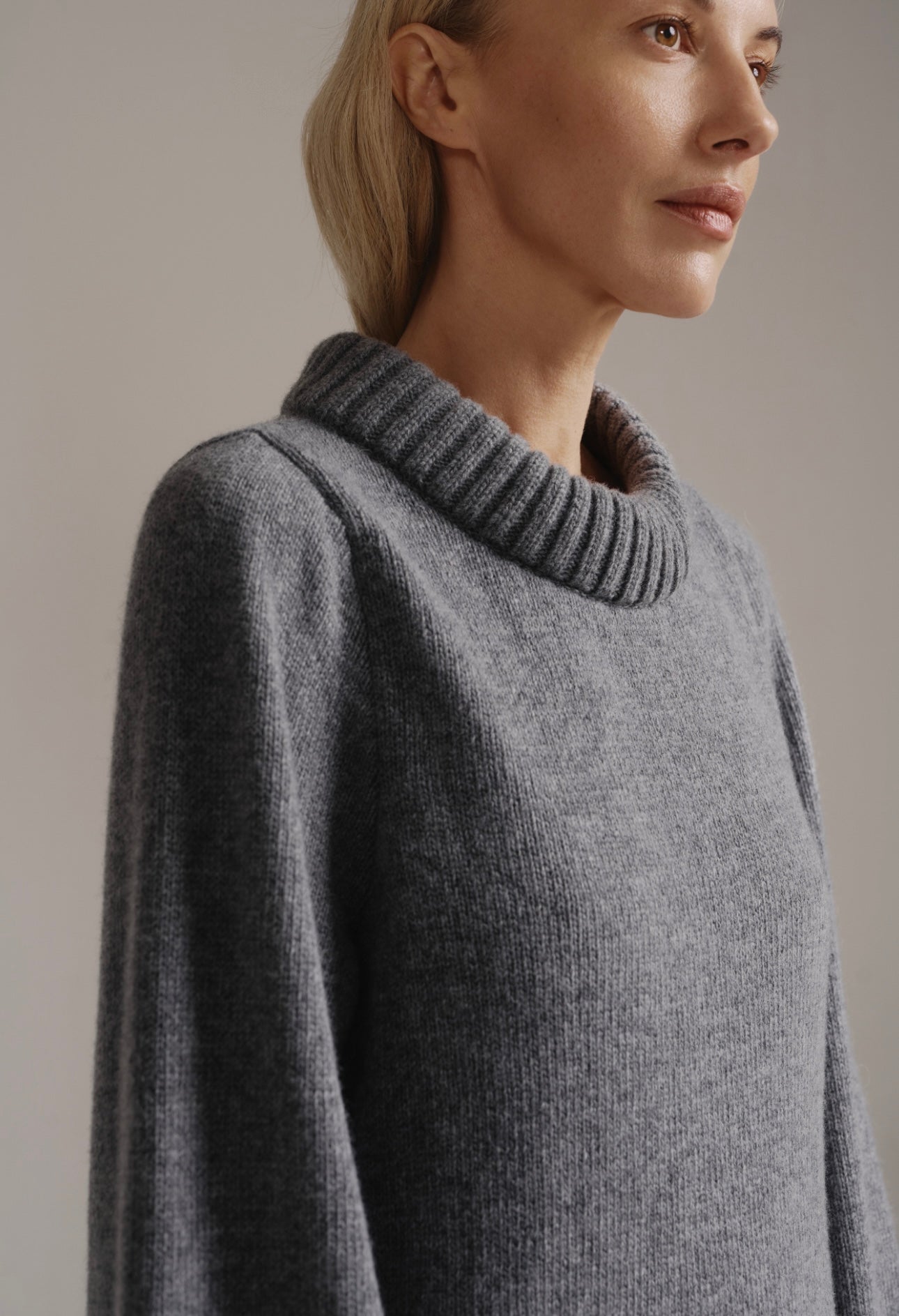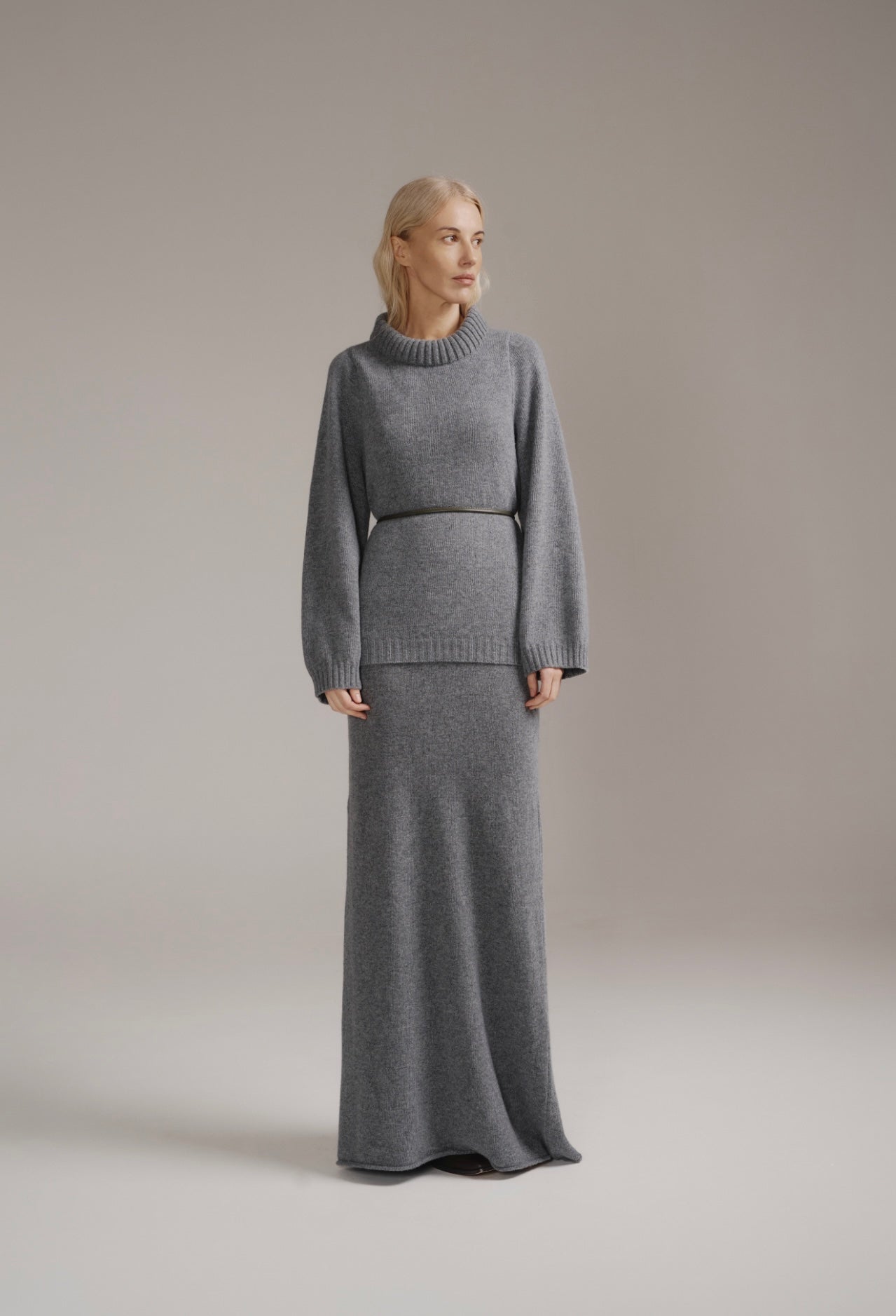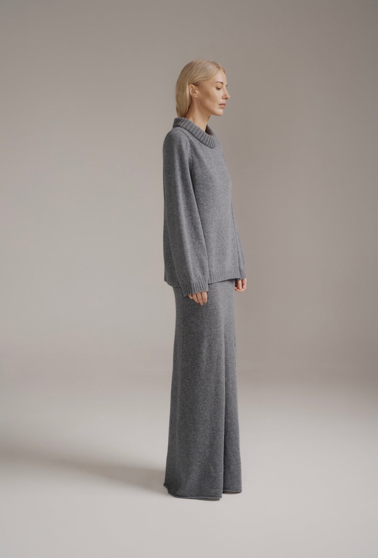 Мʼякий, як дотик, і теплий, як тиша зимового ранку. Светр з вовни ягняти, що обіймає теплом і виглядає дуже елегантно. Напівприлеглий силует з мʼяким розширеним рукавом та цікавою фактурною горловиною в формі намиста робить його базою, до якої хочеться повертатись щодня.